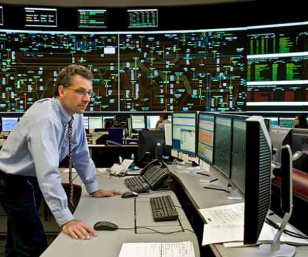 Ontario’s Independent Electricity System Operator (IESO) control room; from where the province’s electricity market and system are managed in real-time. The IESO directs the flow of electricity over electrical grid lines, while transmission companies own, operate and maintain the lines and towers. /IESO
