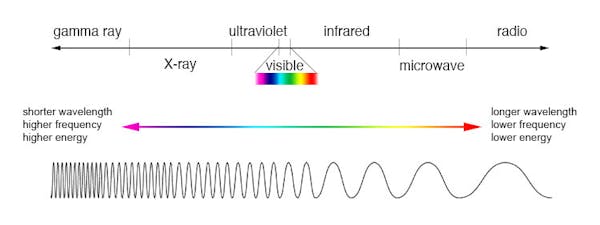 The electromagnetic spectrum is the range of all types of EM radiation – energy that travels and spreads out as it goes. The sun is much hotter than the Earth, so it emits radiation at a higher energy level, which has a shorter wavelength (NASA)
